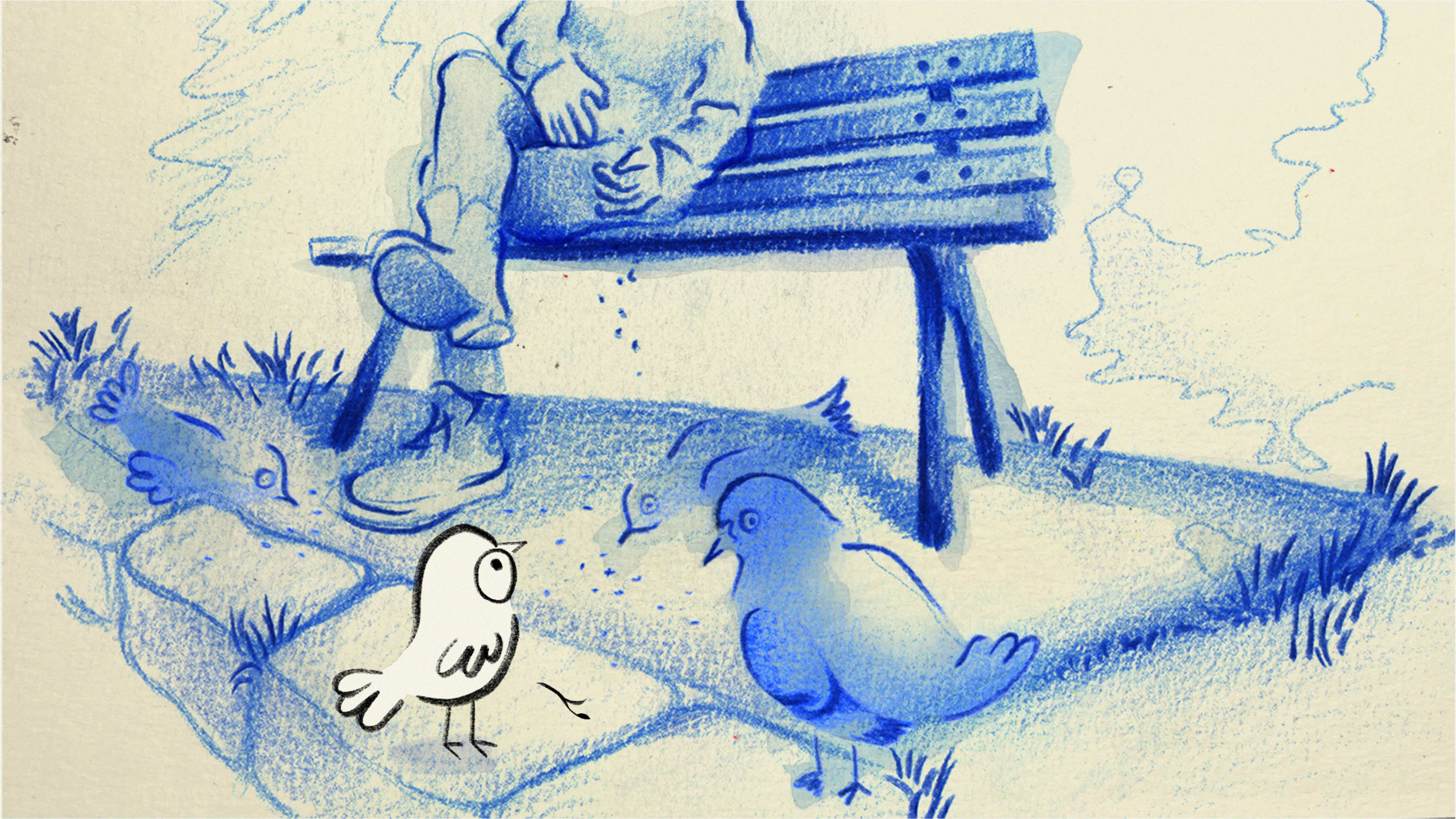 A peculiar pigeon navigates the city, shedding his unique identity to fit in with different groups. After losing his prized possession, he learns to value his true self.